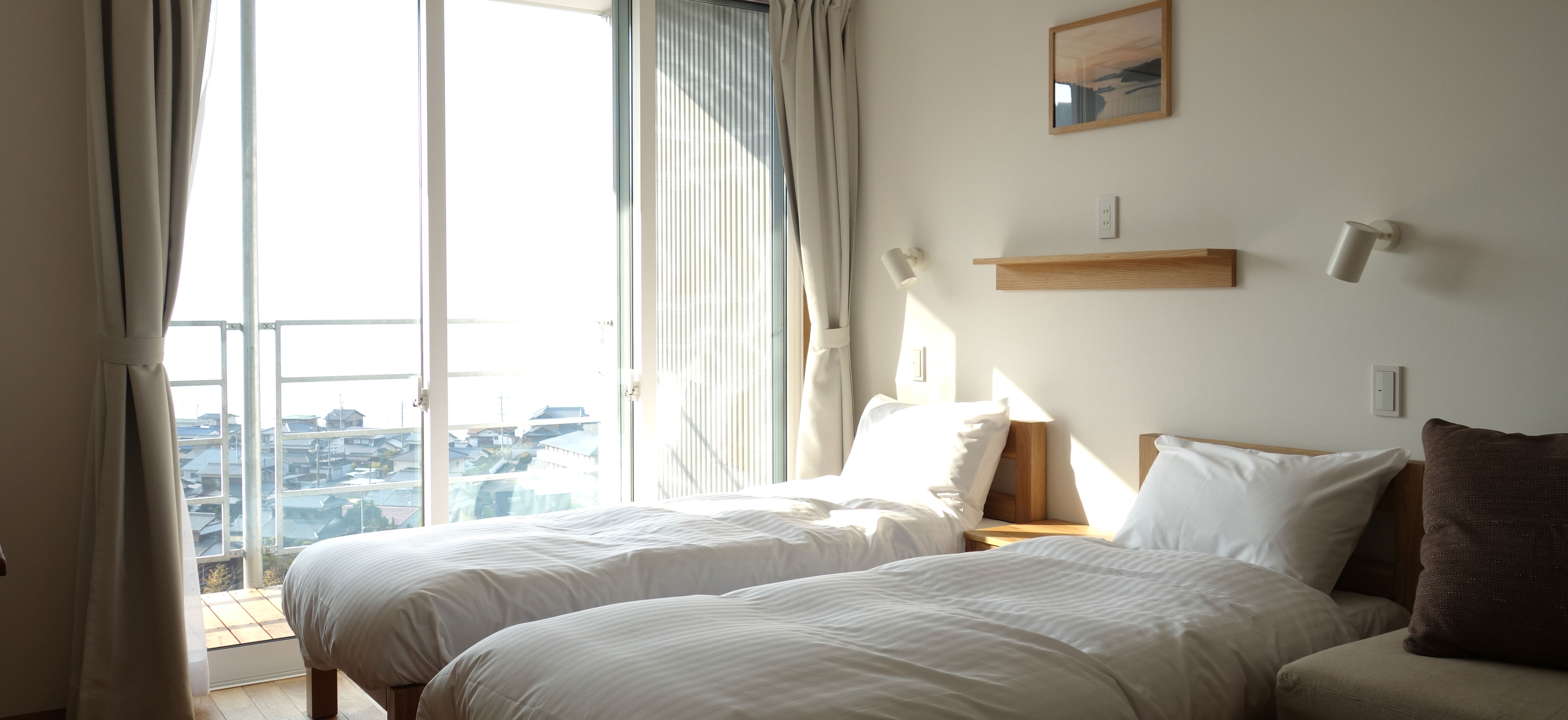All 16 rooms have ocean views! Nestled on top of a hill you can also see Naoshima's beautiful landscape and traditional Japanese village houses.